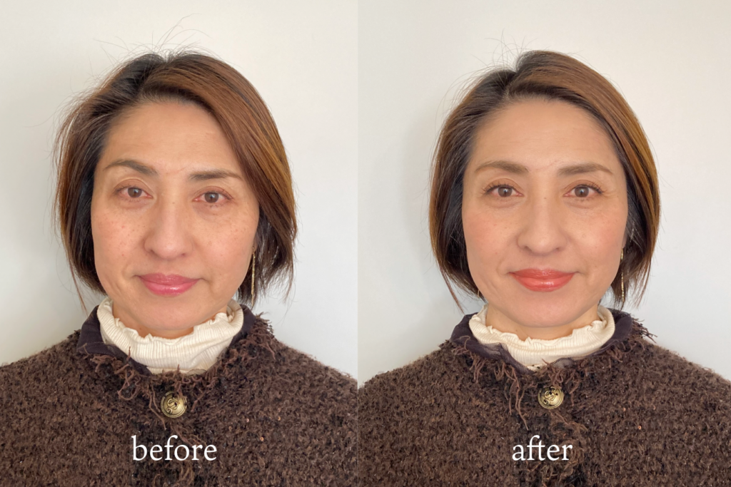 年齢を重ねるにつれ、肌のくすみが気になるようになってきたのと、自分では元気なつもりなのに、友達に「なんか疲れてない?」と言われたことがショックで、メイクレッスンをお願いしました。