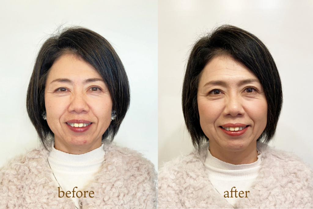 自分の化粧品を使用してのレッスンでしたが、同じものを使っても、塗り方ひとつでこうも仕上がりが違うのかというくらい、レッスン後は肌のトーンがアップして、目元もイキイキしていました。